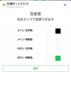 メイン文字色、背景色、ボタン文字色、ボタン背景色を自由に設定できます。